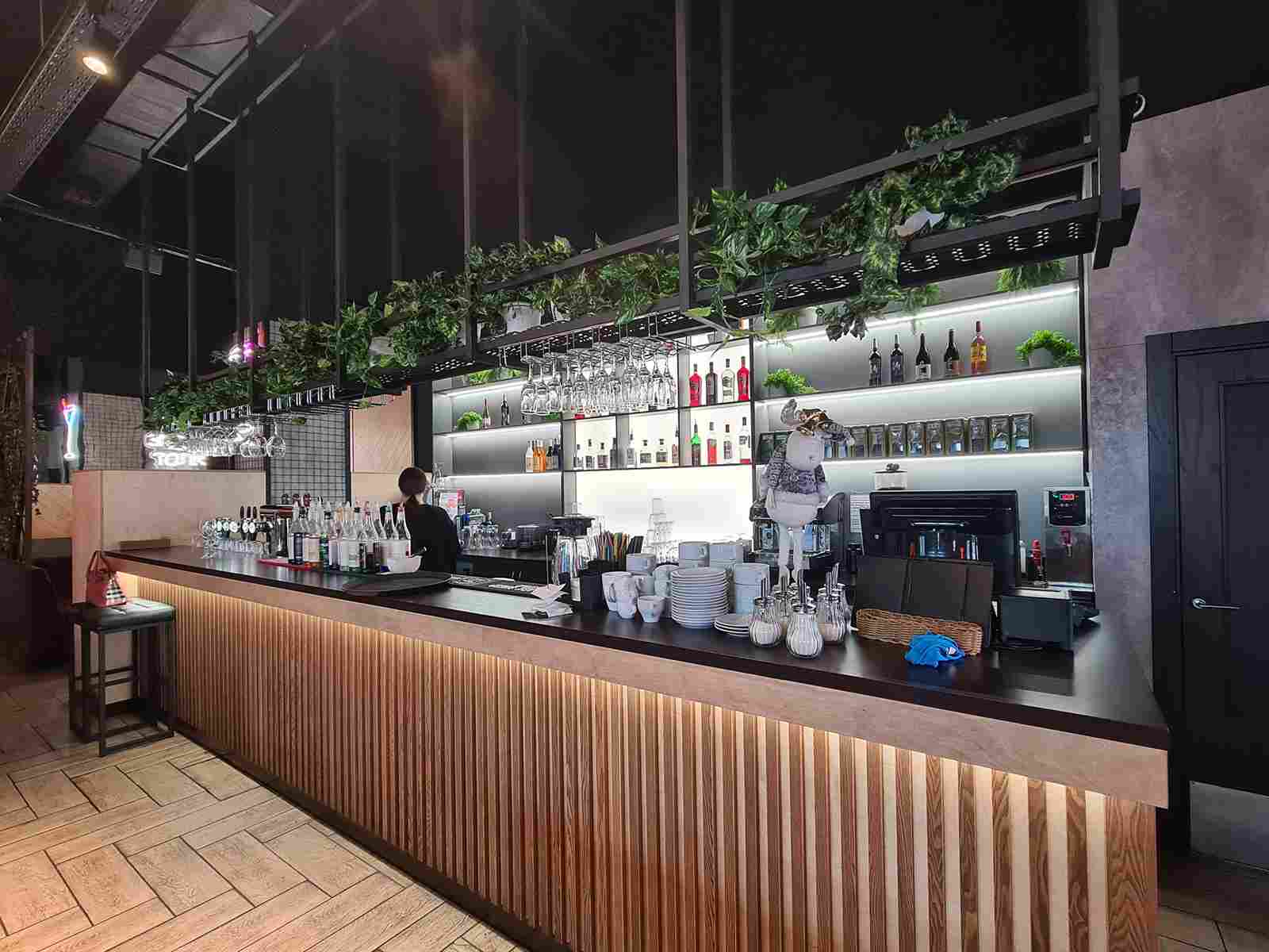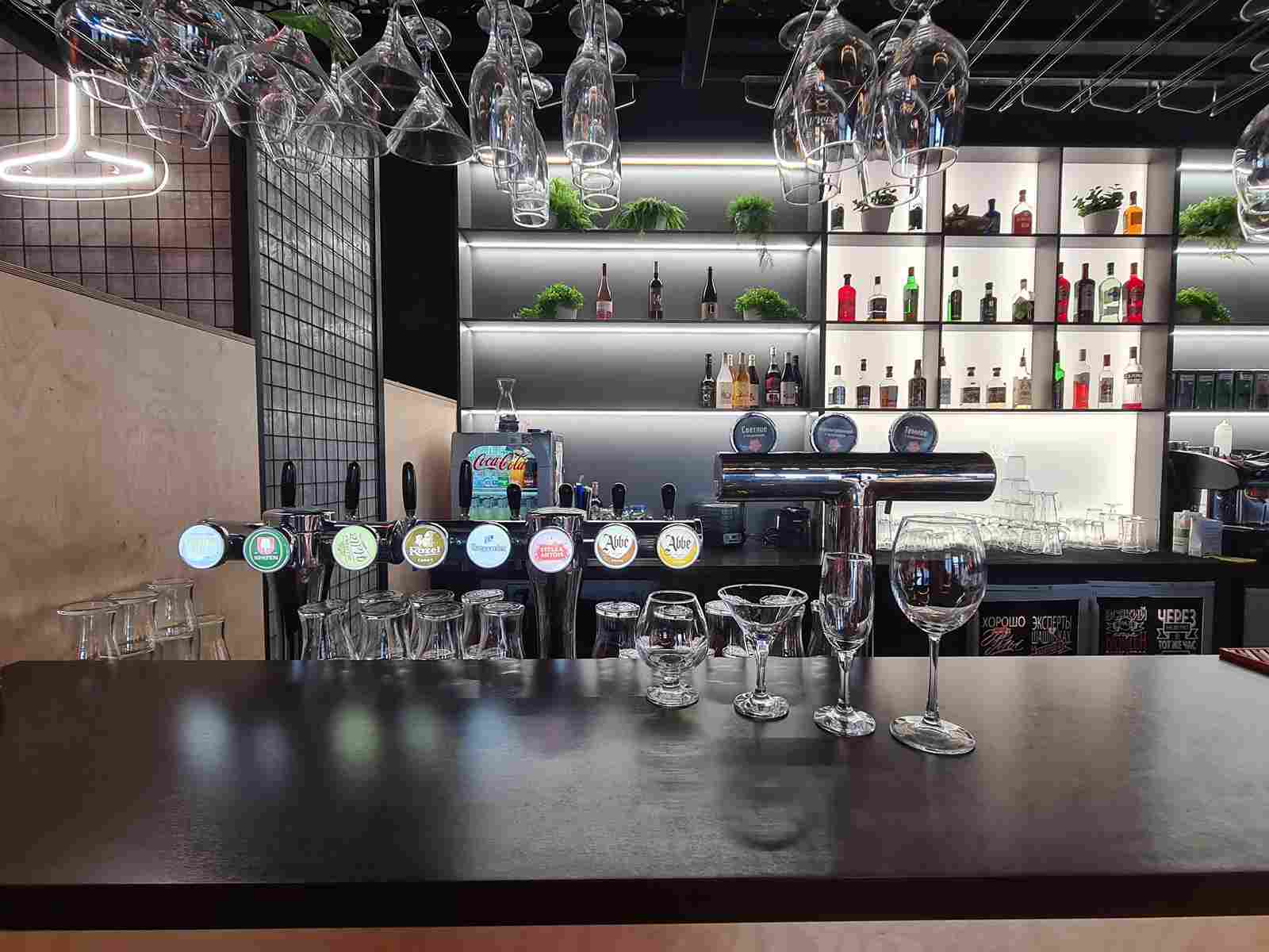 В бар ресторана мы поставили стеклянную посуду !