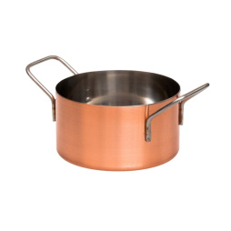 Кастрюля для подачи d=110, h=60 мм б/кр. с медным напылением (CAM11C) - стиль и функциональность в одном предмете. Эта кастрюля идеально подойдет для представления блюд на столе, благодаря своему компактному размеру d=110 мм и высоте 60 мм. Она имеет безукоризненную гладкую поверхность с медным напылением, которое придает ей элегантный и роскошный вид. Благодаря технологии медного напыления, кастрюля обладает отличными теплопроводными свойствами, что позволяет быстро и равномерно нагревать содержимое.
