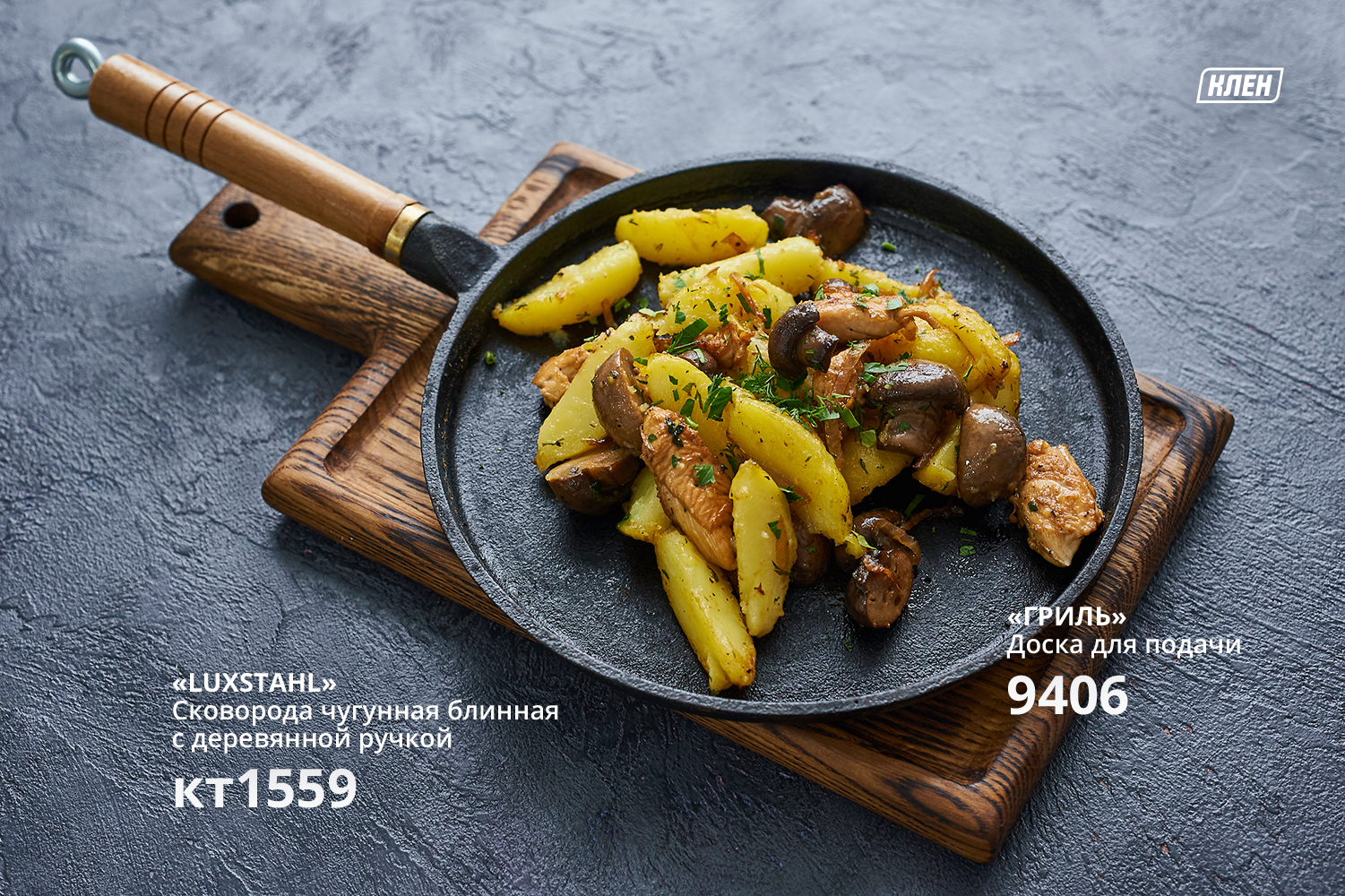 Вы можете приобрести чугунную сковороду Luxstahl с деревянной ручкой d=22см в нашем магазине.